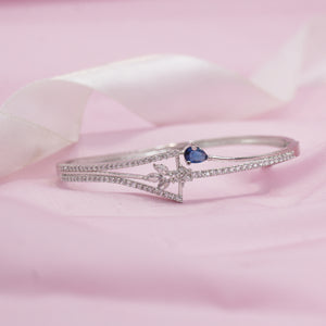 This stunning bracelet features a sleek silver-tone design adorned with shimmering zircon crystals and a vibrant heart-shaped blue stone as the focal point. The delicate Criss cross band adds a modern touch, making it a perfect accessory for both formal and casual occasions.