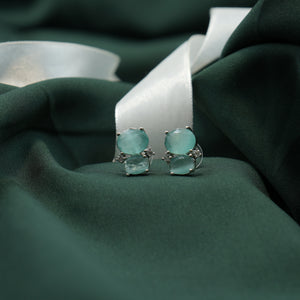 These elegant earrings feature two oval-cut deep Pista Green gemstones set in a sleek silver-tone frame. The design is minimalist yet striking, with the gemstones stacked one above the other, creating a sophisticated layered effect. The simplicity of the design allows the rich Pista Green hues of the gemstones to take center stage, making these earrings perfect for both casual and formal occasions.