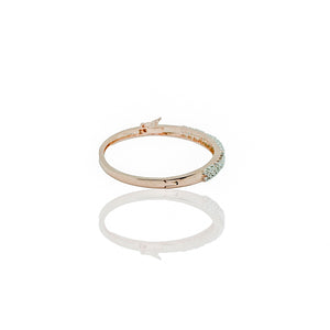 This stunning bangle showcases a luxurious design with a rose gold-tone band adorned with dazzling pavé-set crystals. The intricate arrangement of the crystals creates a mesmerizing sparkle, making it an ideal accessory for both casual and formal occasions. The bangle features a secure clasp for a comfortable fit.