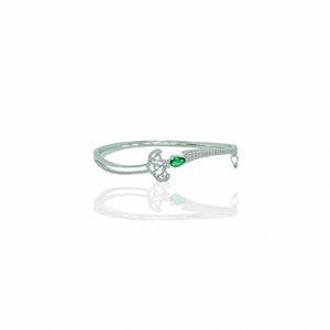 This elegant bracelet features a classic design, showcasing a vibrant emerald Silver-tone with emerald-green accents-green stone at the center, surrounded by sparkling white crystals in a polished silver plated setting. Its intricate detailing and timeless charm make it perfect for adding a touch of sophistication to any outfit.