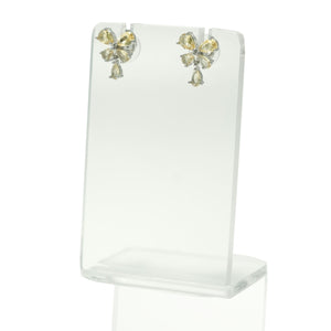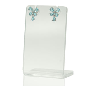 These captivating earrings feature a stunning floral design with vibrant blue gemstones arranged in a beautiful petal pattern. Each earring showcases multiple teardrop-shaped blue gemstones, meticulously set to create a radiant and sophisticated look. The silver-tone setting enhances the vivid blue hue of the gemstones, adding a touch of elegance and timeless charm. Perfect for both casual and formal occasions, these earrings are designed to complement any outfit with their classic allure.