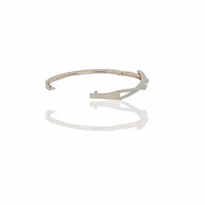 This captivating bangle features a unique, twisted design adorned with sparkling Pista Green crystal. The elegant rose gold-tone plating adds a touch of warmth and sophistication, making it a versatile accessory for any occasion. The bangle's secure clasp ensures a comfortable and secure fit, while the intricate crystal detailing catches the light beautifully, creating a dazzling effect.