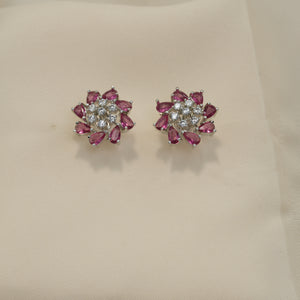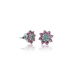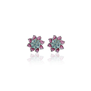 These charming earrings feature a delicate floral design with marquise-cut light blue gemstones arranged in a circular pattern. Each earring is crafted with a central cluster of clear stones, adding a touch of sparkle and elegance. The light blue hues of the gemstones are beautifully complemented by the silver-tone setting, creating a fresh and sophisticated look. These earrings are perfect for adding a touch of color and elegance to any outfit, suitable for both casual and formal occasions.
