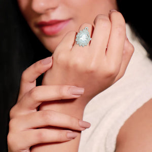 This exquisite pendant features a stunning, large oval-shaped central gemstone surrounded by a halo of sparkling zircon crystals. Whether for a special occasion or just because, this ring makes an ideal gift for someone special. Its timeless design and high-quality materials ensure it will be cherished for years to come.